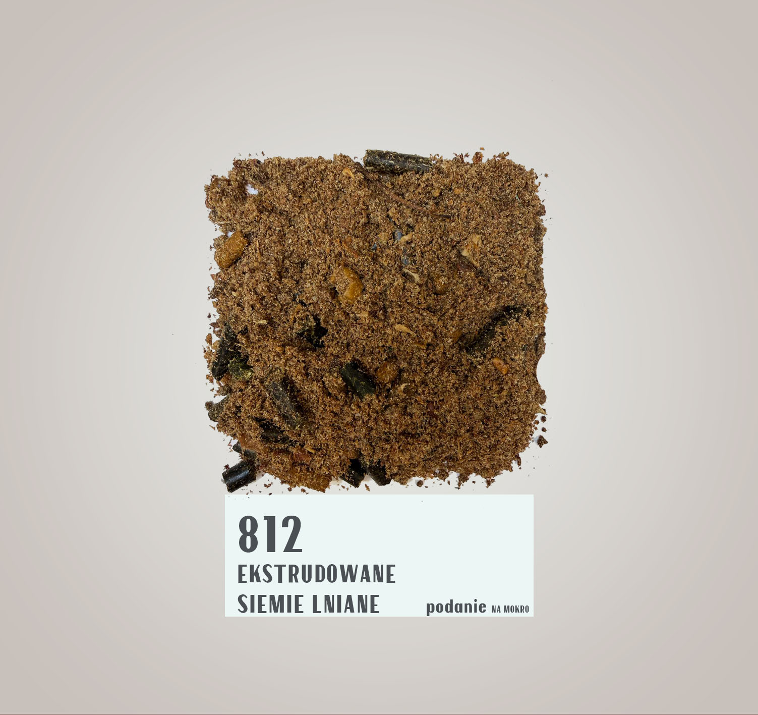 812 siemię lniane ekstrudowane – to dodatek paszowy wnoszący do diety wartościowy tłuszcz i białko lnu oraz otrąb ryżowych, jak również proteiny lucerny i traw. Dodatkowo zawiera wytłoki z jabłek nadające smak i będące źródłem cennych pektyn.